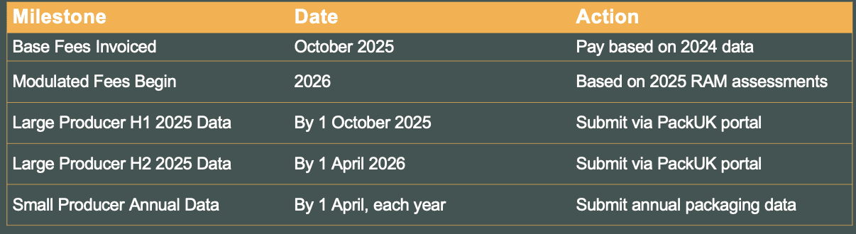 Base fees apply for 2025, based on 2024 data (first invoiced October 2025 via PackUK).